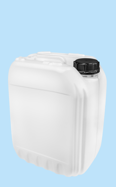 Envase de PEAD Bidón 5 L. Su diseño es estibable con soportes antidesplazamiento.