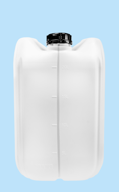 El envase PEAD 20 L, Supertank Short, es un bidón que incorpora un asa en la parte superior para facilitar su transportación y una mirilla que deja ver el contenido. Su diseño con soportes antideslizamiento brinda mayor establidad y seguridad.