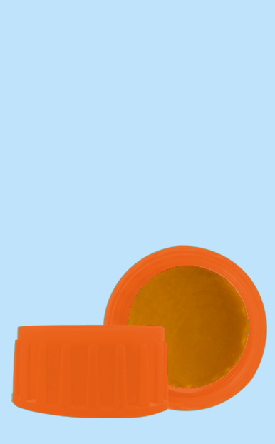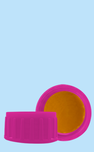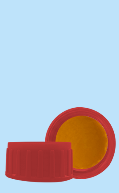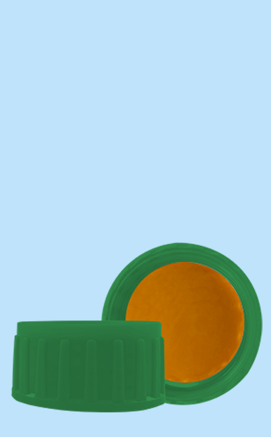 Tapa de 45 mm fabricada con Polietileno de Alta Densidad (PEAD) mediante el proceso de inyección. Cuenta con Liner dorado para sellado por inducción.